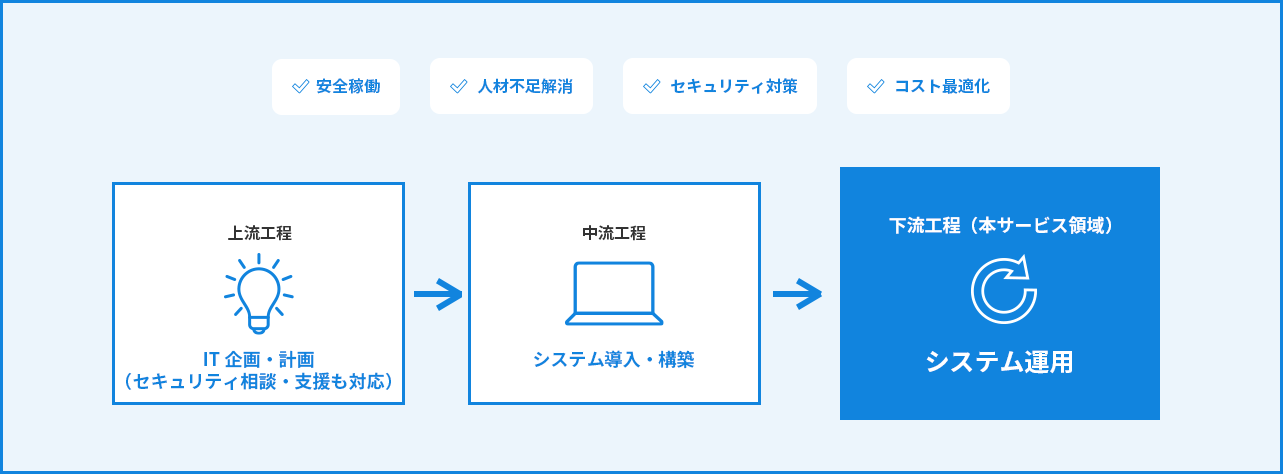 企業のITインフラ維持に必要な業務を包括的に代行します。