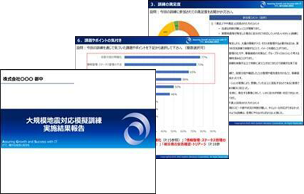 訓練実施報告書は、今後のBCP/BCM向上にお役立ていただけます。